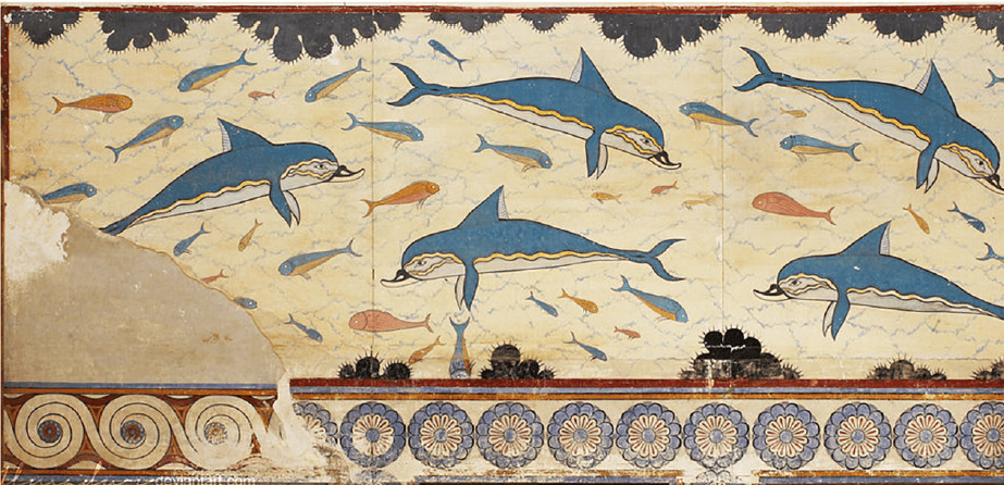 Artizani minoici au pictat palatele miceniene cu frescele lor caracteristice: procesiuni de femei în rochii elaborate, animale în mișcare, scene marine cu delfini și caracatițe. Forma ceramicii, motivele decorative, convențiile artistice — toate au migrat dinspre Creta spre continent.