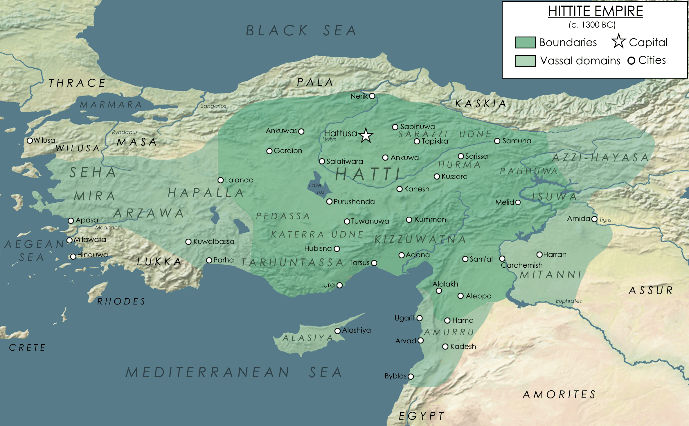 În aceeași perioadă, aproximativ între 1600 și 1200 î.Hr., micenienii își extindeau treptat influența în Marea Egee. Ei au ajuns să controleze numeroase insule, inclusiv Creta minoică, și au pătruns până pe coastele Anatoliei. Contactul cu lumea anatoliană a devenit astfel inevitabil.