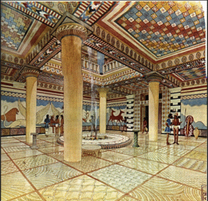 Interiorul palatului micenian era organizat în jurul unui element central specific lumii indo-europene și absent din arhitectura minoică: megaronul.