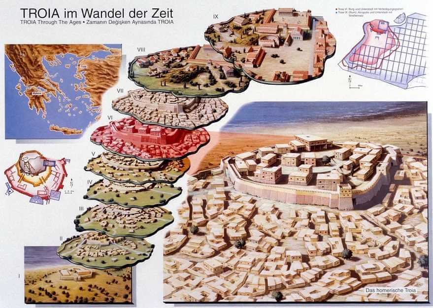 Schliemann săpase prea adânc, trecând pe lângă ceea ce căuta. Troia lui Homer era probabil stratul VII, cel care poartă urmele unui incendiu devastator din jurul anului 1200 î.Hr.