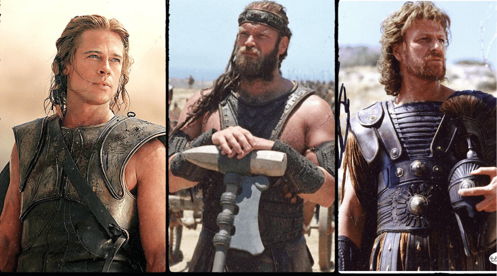 Ahile, Ajax și Ulise — interpretați de Brad Pitt, Tyler Mane și Sean Bean în filmul Troy (2004)
