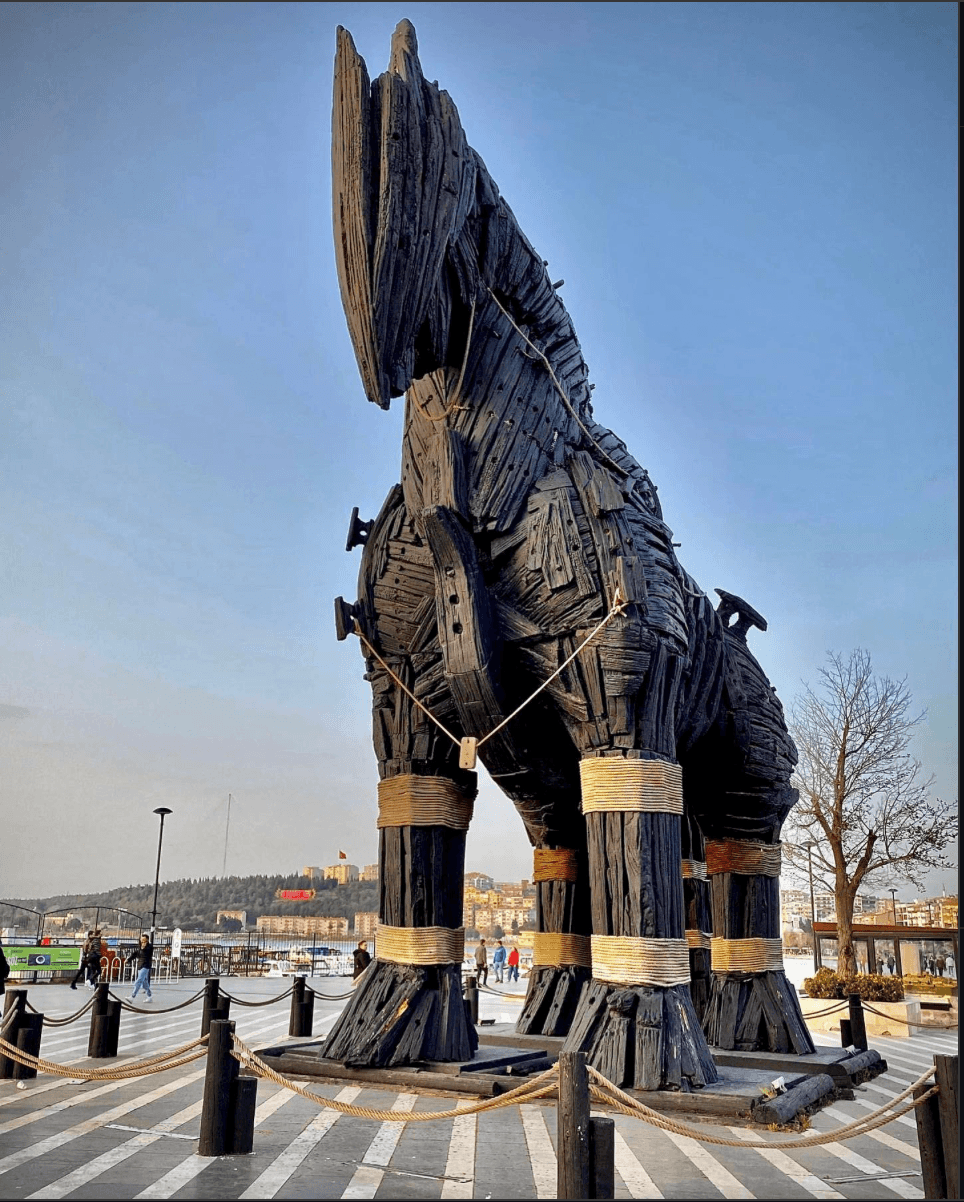 Calul troian folosit în filmul Troy (2004) a fost donat orașului Çanakkale, unde poate fi văzut și astăzi