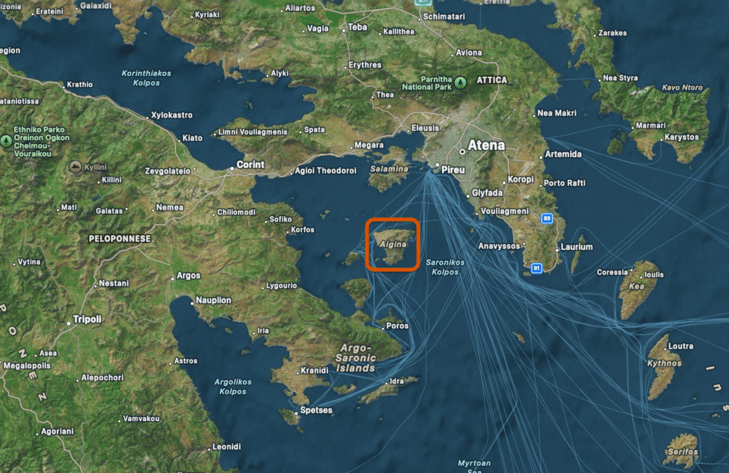 În fapt, nava a oprit în Egina — o insulă aflată în conflict permanent cu Atena, unde un atenian liber putea fi capturat și vândut fără consecințe legale serioase.
